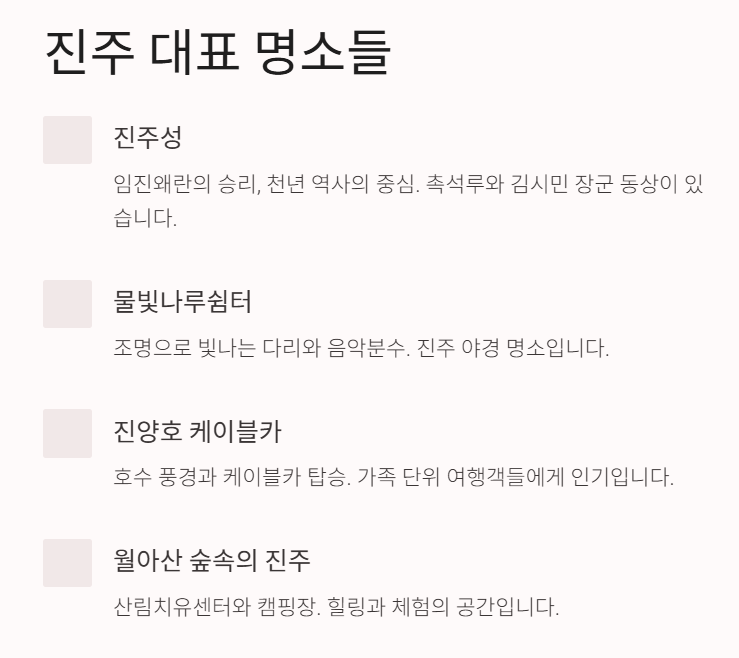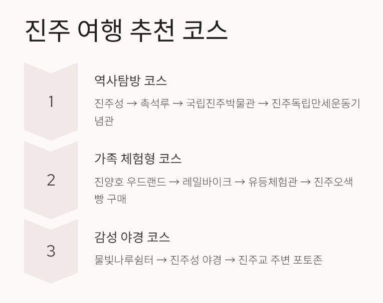 진주는 단순한 지방 소도시가 아니라, 역사와 현대, 전통과 예술, 자연과 사람이 공존하는 진짜 여행 도시입니다.