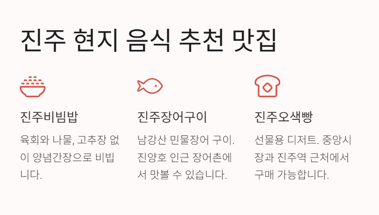 - 전통 도자기, 목공예 등 진주 장인의 손길을 배울 수 있음