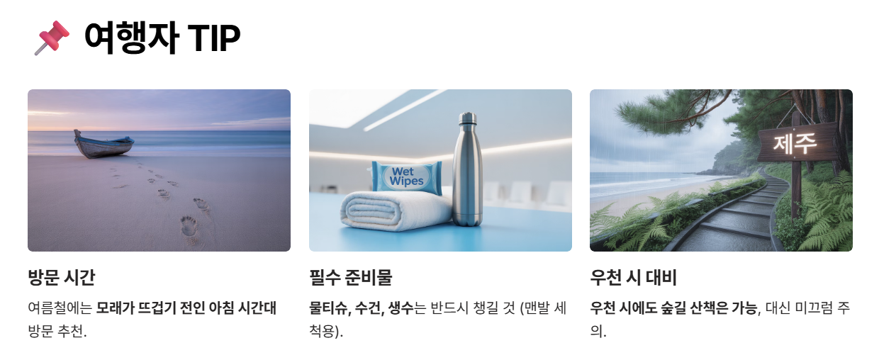 - 여름철에는 모래가 뜨겁기 전인 아침 시간대 방문 추천